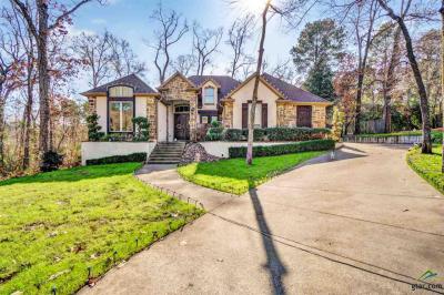 Stunning stone and stucco home situated on a lovely half acre cul de sac wooded lot in The Ridge at The Woods. This home features beautiful hardwood floors, beamed ceilings, arched entries, large wooden columns and tile floors. Spacious floor plan with formal dining room and large living room with custom rock fireplace. Gourmet kitchen with custom cabinets, granite counter tops and breakfast bar. The master suite is covered with wood flooring and features a sunken walk-in shower, garden tub, double vanities, and granite counter tops. The master also opens up to a covered private patio, originally designed for a hot tub. The guest suite could also be used as a large recreation or media room with wood trimmed ceiling plus a full bath with granite counter top. The covered patio has 2nd fireplace and wiring for outside TV. This home is a must see! Call to schedule your private showing today!